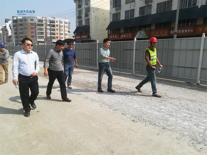 城投公司王華總經(jīng)理(左前二)在現場(chǎng)對共振碎石施工進(jìn)行考察
