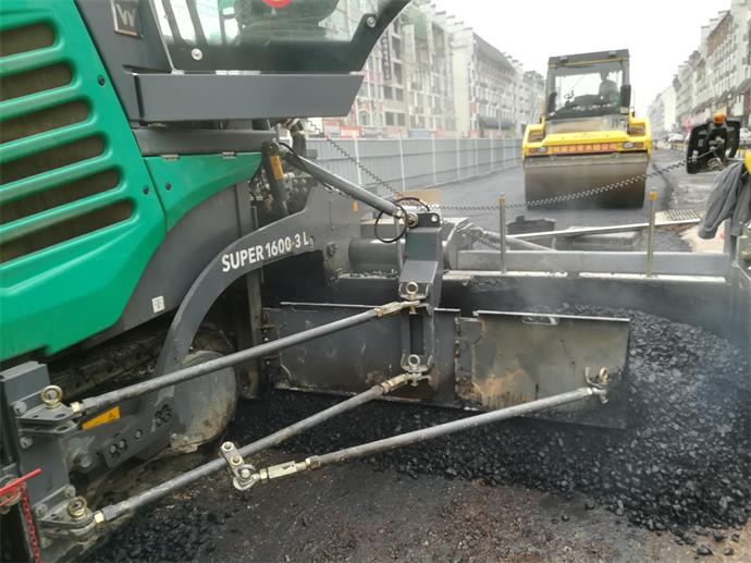 姑婆山大道改造工程如期開(kāi)展機動(dòng)車(chē)道瀝青混凝土攤鋪施工