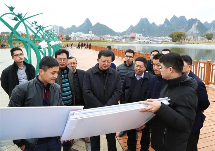 2018年2月22日,春節長(cháng)假后第一個(gè)工作日,市委書(shū)記李宏慶前往賀州愛(ài)蓮湖生態(tài)公園進(jìn)行現場(chǎng)調研,了解項目提升工程進(jìn)展情況。市委常委、秘書(shū)長(cháng)陳遠明,賀州城投集團黨委書(shū)記、董事長(cháng)鄒貴惕陪同調研。