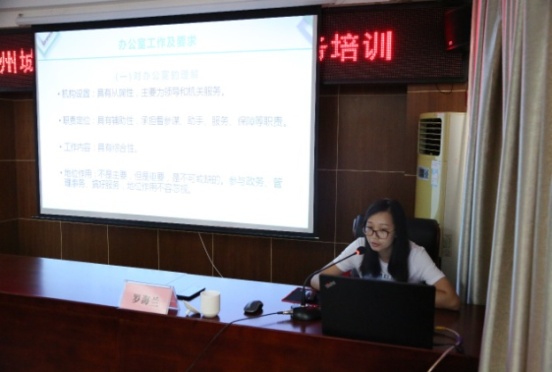 上午,集團黨委辦公室主任湯彩燕、集團行政辦公室主任羅海蘭結合理論知識、案例分析和工作經(jīng)歷,分別為參訓人員講解了信息寫(xiě)作與保密知識、辦公室工作業(yè)務(wù)知識。