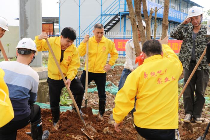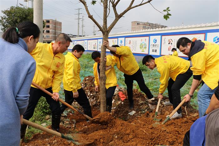 在植樹(shù)活動(dòng)中,三個(gè)黨支部成員們互幫互助,團結一心,大家分工明確,兩兩合作,揮舞鐵鍬翻新土,扶植新苗列成行。此次活動(dòng)共載種桂花樹(shù)25棵,為項目工地增添了一抹新綠。此次活動(dòng)認真踐行了以生態(tài)優(yōu)先、綠色發(fā)展為導向的發(fā)展觀(guān),增進(jìn)了各黨支部的革命友誼,做到了項目建設與生態(tài)環(huán)境保護的有機結合。