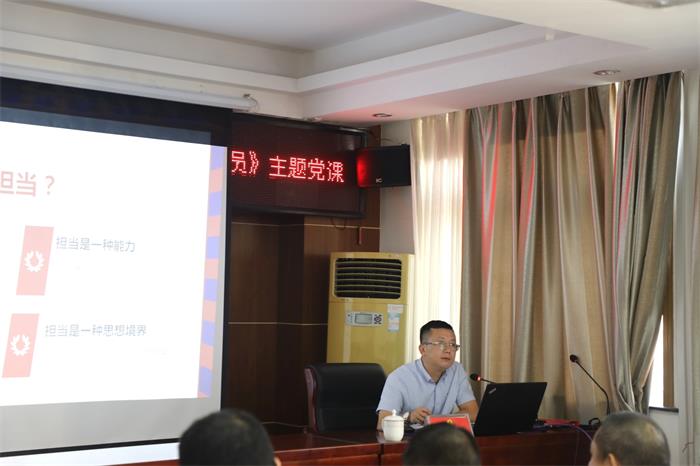 為深入推進(jìn)“不忘初心、牢記使命”主題教育,進(jìn)一步激勵廣大黨員、干部職工新時(shí)代、新?lián)?、新作為?月23日,賀州城投公司黨支部書(shū)記陳桂軍圍繞勇?lián)?、善作為、做新時(shí)代合格黨員主題為全體黨員、入黨積極分子、團支部委員上“不忘初心、牢記使命”專(zhuān)題黨課。