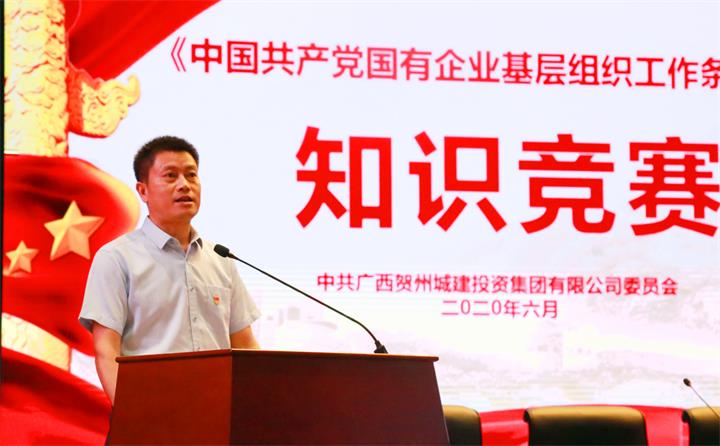 發(fā)布時(shí)間:2020-06-24 作者:文字/吳姍 圖片/駱堅忠、許浩、張嘉茵 編輯/吳姍 來(lái)源:本站原創(chuàng ) 審核:湯彩燕為慶祝中國共產(chǎn)黨成立99周年,深入學(xué)習宣傳貫徹《中國共產(chǎn)黨國有企業(yè)基層組織工作條例(試行)》(以下簡(jiǎn)稱(chēng)《條例》), 6月24日,賀州城投集團黨委舉辦《條例》知識競賽活動(dòng),城投集團黨委書(shū)記、董事長(cháng)鄒貴惕出席活動(dòng)并講話(huà)。集團黨委副書(shū)記、工會(huì )主席梁輝露,黨委委員、副總經(jīng)理柳國忠以及各黨支部黨員(含預備黨員)、入黨積極分子現場(chǎng)觀(guān)摩活動(dòng)。