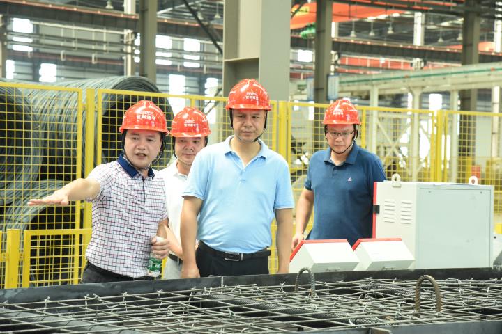 “這種流水線(xiàn)作業(yè)生產(chǎn)方式節省原料、綠色環(huán)保,符合國家綠色發(fā)展理念,很不錯。”梁志伍在參觀(guān)賀州通號生產(chǎn)車(chē)間時(shí)表示。梁志伍先后實(shí)地參觀(guān)了公司生產(chǎn)基地PC自動(dòng)化流水線(xiàn)、鋼筋加工生產(chǎn)線(xiàn)、異型構件生產(chǎn)線(xiàn)及預制構件產(chǎn)品展示區,詳細了解了車(chē)間生產(chǎn)工藝流程、產(chǎn)品技術(shù)要求、用工、項目訂單等情況,肯定了公司快速發(fā)展取得的成果。