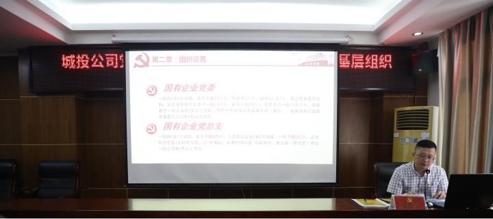 7月17日下午,賀州城投公司黨支部書(shū)記、董事長(cháng)陳桂軍為全體黨員上黨課,專(zhuān)題學(xué)習《中國共產(chǎn)黨國有企業(yè)基層組織工作條例(試行)》(以下簡(jiǎn)稱(chēng)《條例》),支部全體黨員、入黨積極分子、團委委員共40余人參加黨課學(xué)習。