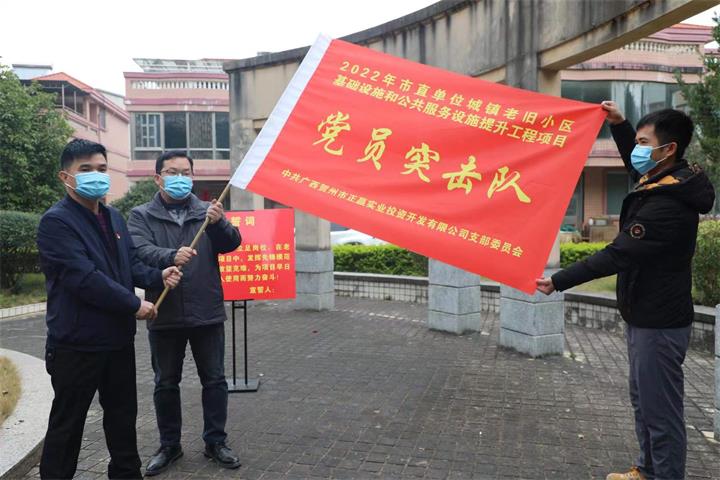隨后,活動(dòng)人員來(lái)到了賀州市檢察院生活小區,該小區是正贏(yíng)實(shí)業(yè)公司負責實(shí)施的賀州市2022年市直單位城鎮老舊小區基礎設施和公共服務(wù)設施提升工程項目其中一個(gè)老舊小區。在老舊小區現場(chǎng),支部開(kāi)展了黨員對標承諾活動(dòng),并成立了2022年市直單位老舊小區基礎設施和公共服務(wù)設施提升工程項目“黨員突擊隊”。柳國忠強調,全體黨員要通過(guò)向身邊的優(yōu)秀黨員學(xué)習并從中確立標桿和榜樣,在項目建設中以黨員的標準嚴格要求自己,帶頭攻堅克難,沖鋒在項目一線(xiàn),更好的為人民群眾服務(wù)。