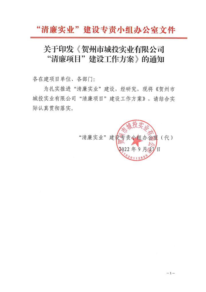 賀州城投集團實(shí)業(yè)公司“清廉實(shí)業(yè)”建設專(zhuān)責小組辦公室