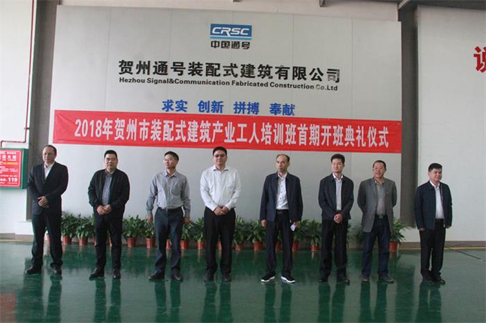 2018年賀州市裝配式產(chǎn)業(yè)工人培訓班首期開(kāi)班典禮在賀州市通號實(shí)訓基地舉行。