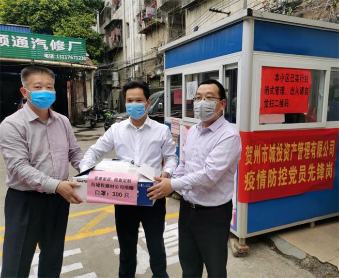 2月26日,甲供材供應商惠普貿易公司董事長(cháng)黃普干代表該公司向城投資產(chǎn)管理有限公司疫情防控黨員先鋒崗捐...